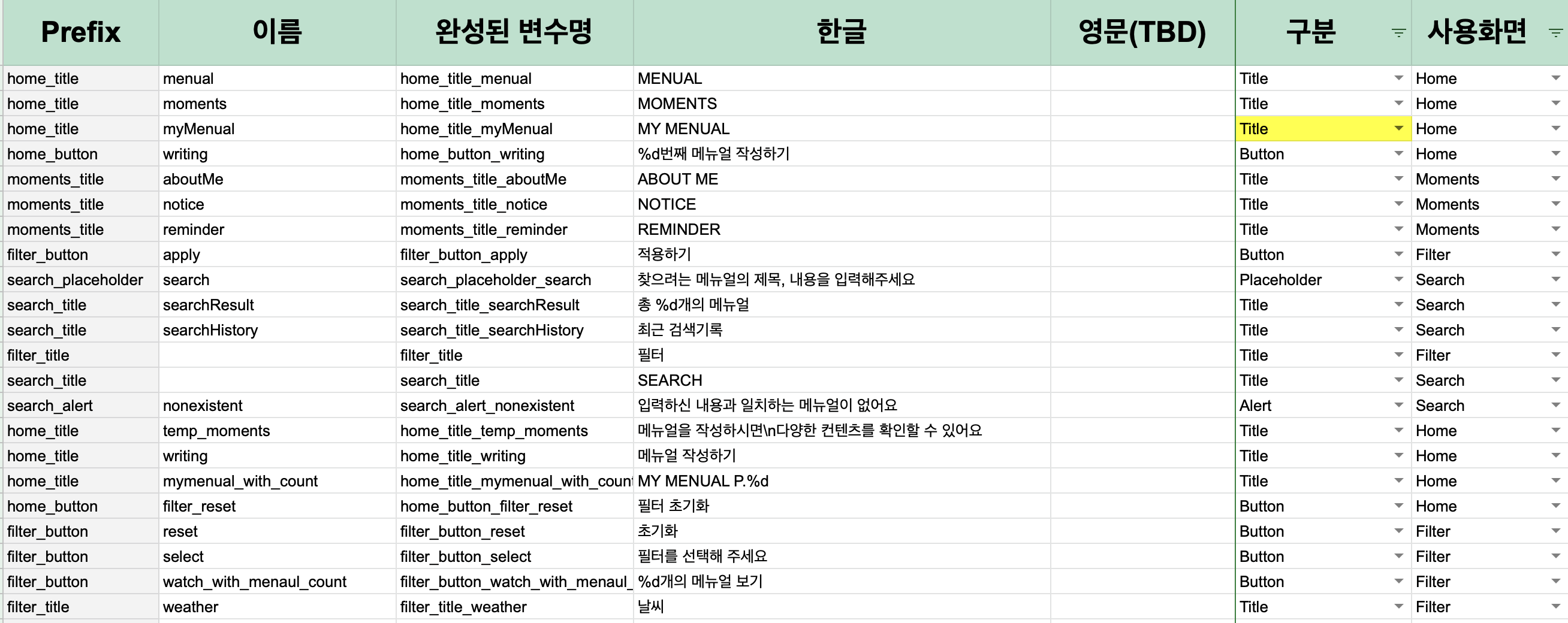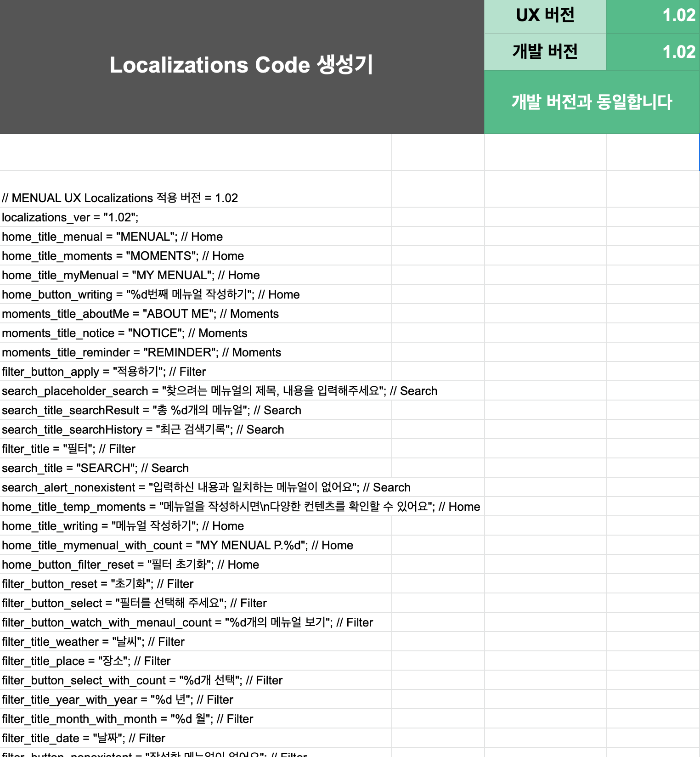 메뉴얼에 사용되는 모든 문구는 아래 구글 스프레드시트에 입력하도록 룰을 정했습니다.