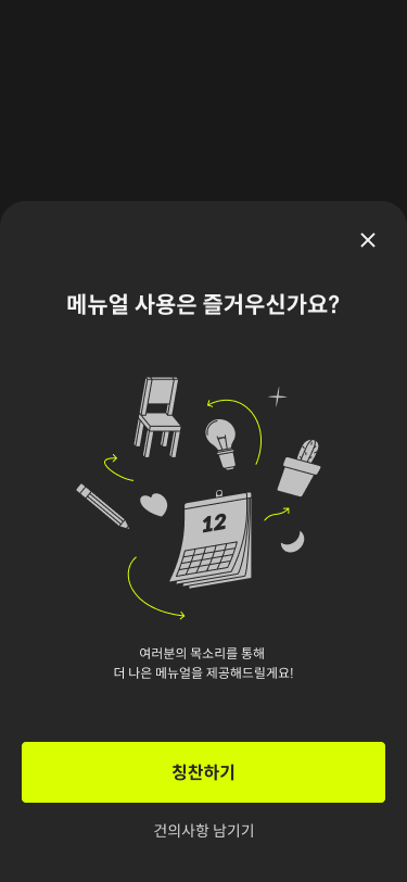 BottomSheet을 통해서 리뷰 요청 팝업이 뜰 수 있도록 하는 요구사항이 핵심입니다!